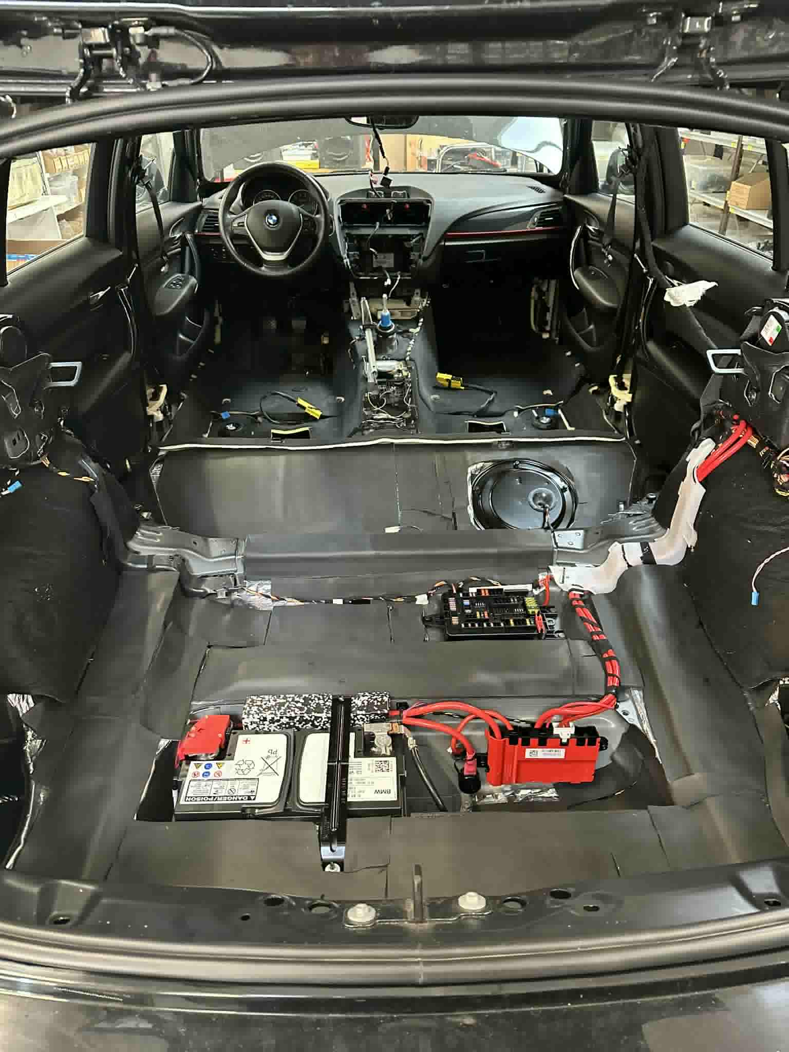 Først er kabinen blevet totalt skilt ad, så både bund og loft kan beklædes. Alt interiør er sat til side og venter på at komme på plads igen, når dæmpningen er fuldført.