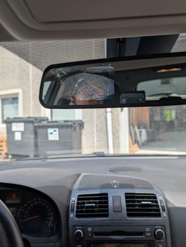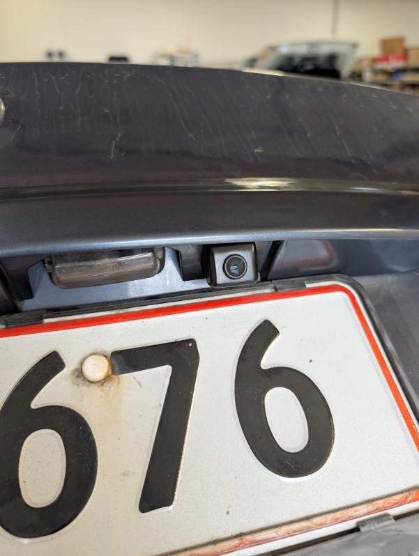Vi har monteret et bakkamera på denne Toyota Avensis, hvor billedet vises direkte i et nyt bakspejl med indbygget skærm. Spejlet passer perfekt i den originale placering, så vi har blot udskiftet det gamle spejl.